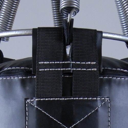 Узел крепления состоит из кольца по диаметру мешка, ремней и диска, что вращается.