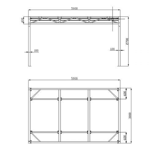 Стойка для боксерских мешков профессиональная №5 (на 6 мешков (на рельсовой системе)) (Ш:Д:В): 3,0:5,0:2,7 м.