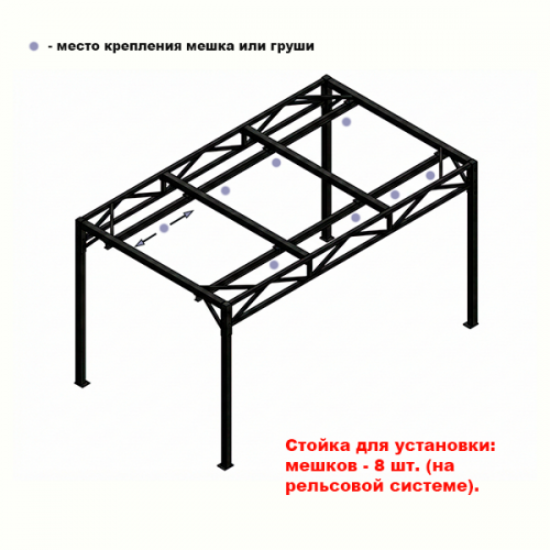 Стойка для боксерских мешков профессиональная №6 (на 8 мешков (на рельсовой системе)) (Ш:Д:В): 4,0:6,0:2,8 м.