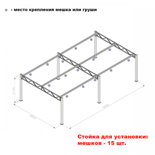 Стойка для боксерских мешков профессиональная №9 (на 15 мешков) (Ш:Д:В): 5,0:9,0:2,7 м.