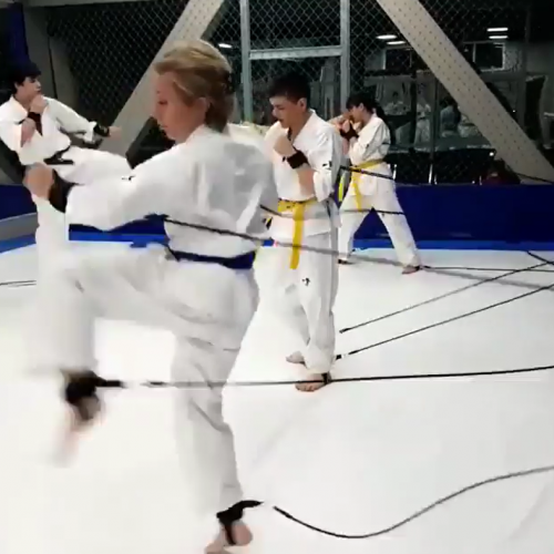 Так как тренажер тянет за все четыре конечности, приходится сильно напрягаться, чтобы сохранять равновесие, особенно при ударах ногами.