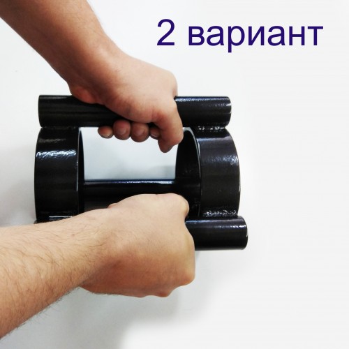 2 вариант- применять для укрепления кистей рук, за счет перекатов на одном упоре из стороны в сторону, что так же позволяет проработать все мышцы плечевого пояса и, дополнительно, позволяет развивать и укреплять мышцы рук, кистей, плеча, предплечья и груди. Данный тренажер для разработки кистей рук, рекомендуем использовать скалолазам, велосипедистом, и особенно боксерам. Основная нагрузка этого тренажера приходится на мышцы кисти руки. Ежедневные, даже кратковременные занятия, позволят развить ловкость и выносливость рук.